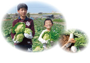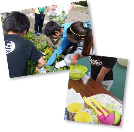 近隣の畑にて、栽培や収穫などを通して土に触れる様々な体験をして頂けます。